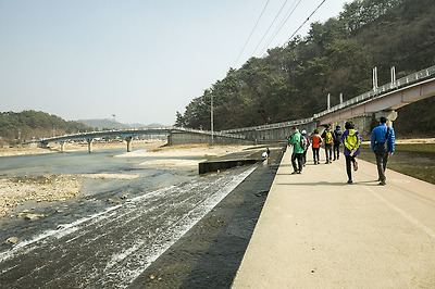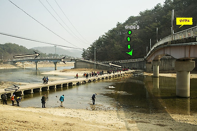 하나는 지정대교를 다시 건너 평탄한 길로 멀리 돌아서 가는 방법이고