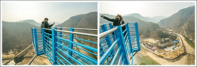 전망대에서 출렁다리를 배경으로 한 사진은 건졌으니