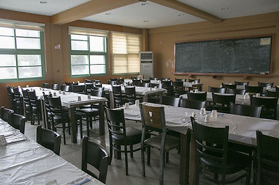 복도 끝까지 와 일반적으로 사용하는 식당인 3학년 교실로 들어섰어요.