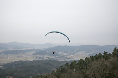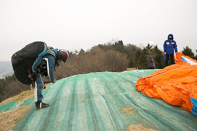 미세먼지가 심한 날이라 패러글라이딩 하러 온 사람이 없으면 어쩌나 했는데
