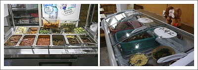 무한리필 가능한 반찬과 야채 코너에서 반찬을 가짓수대로 담아오니...