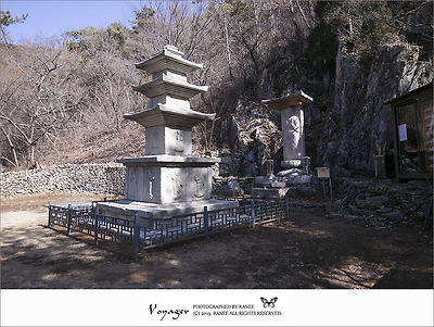금둔사에 있는 두 개의 보물, 즉 삼층 석탑(보물945호)과 석불비상(보물946호)이랍니다.