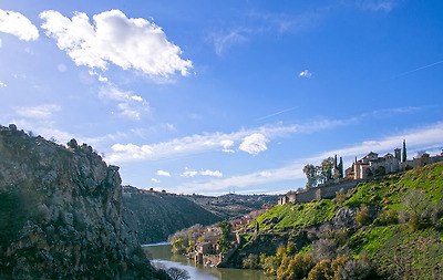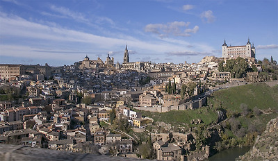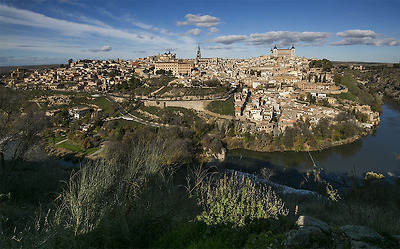굽이진 타호강과 함께 우뚝 솟은 알카사르(오른쪽)와 대성당(중앙)이 가장 먼저 눈에 들어오고