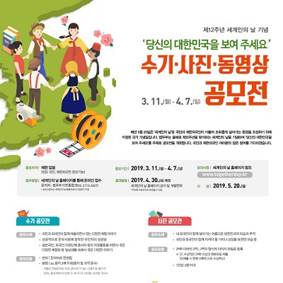 응모작은 3월 11일(월)부터 4월 7일(일)까지, 세계인의 날 홈페이지(www.togetherday.kr )를 통해 제출하면 됩니다.