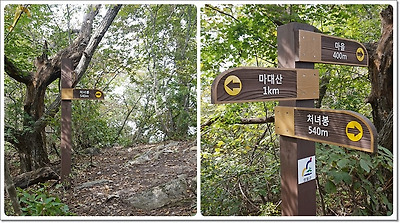 처녀봉 방향 갈림길 오른쪽에는 이정표에