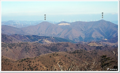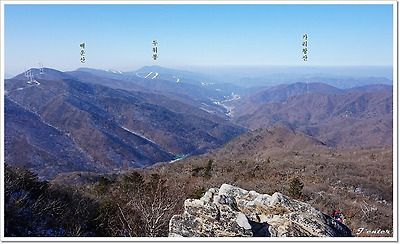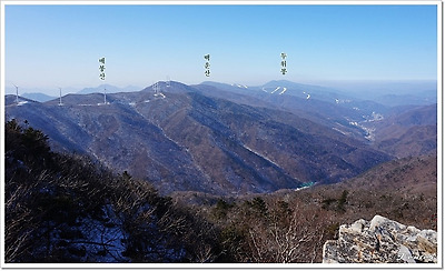 전망바위에서 보이는 백운산과 두위봉(1470m)