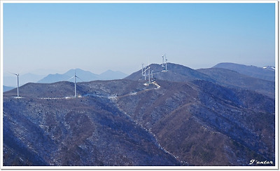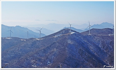 백운산 능선에 서 있는 풍력발전기