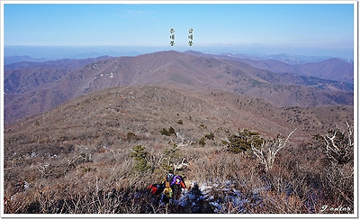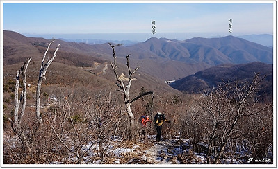 동쪽으로 보이는 비단봉과 매봉산