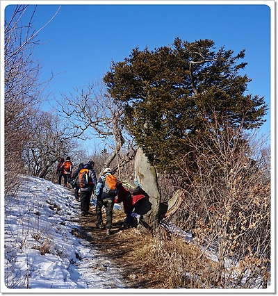 완만한 백두대간 능선길을 따라 25분쯤 오르