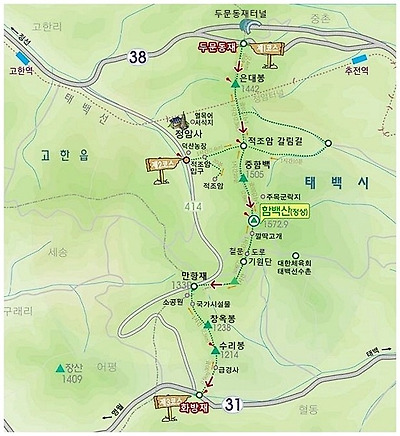 함백산 등산지도(출처:Web/일부편집)