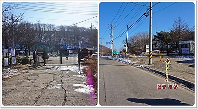 철문에서 도로 건너편 왼쪽에 있는 등산로에