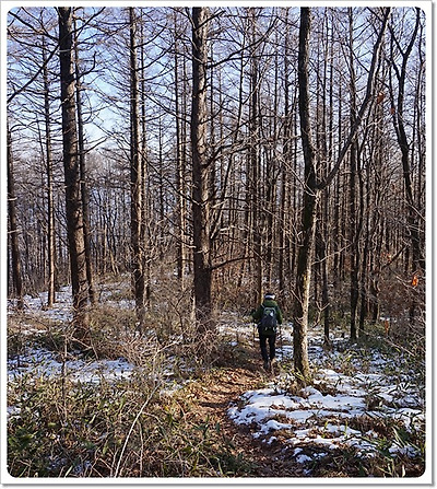 수리봉으로 진행하는 백두대간 낙엽송 길
