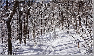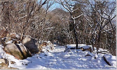 눈이 두껍게 쌓여있는 장군봉 방향 등산로