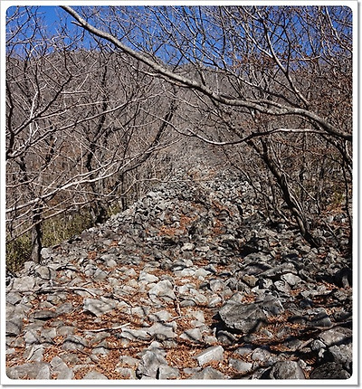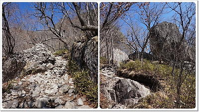 암릉을 넘어가자 울퉁불퉁한 바위들이 많은