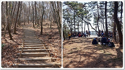 계단이 많은 건너재산 등산로를 8분 정도