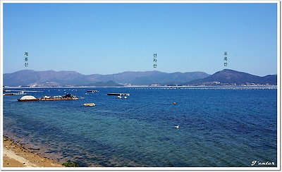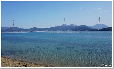 해변에서 당겨본 노자산과 가라산