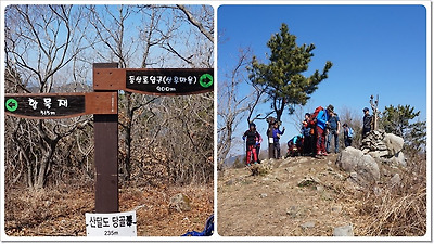이정표와 건너재산 정상(209m)