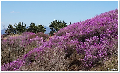 드넓은 분홍빛 진달래꽃 군락지로 유명하다.
