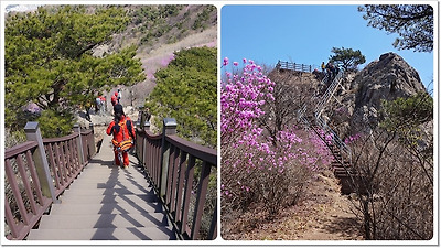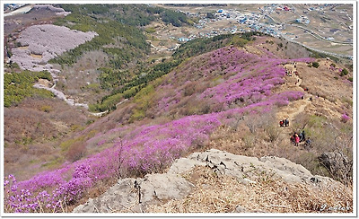분홍빛 진달래군락과 주변 풍경을 즐기면서