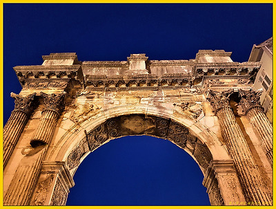 당시 큰 전투에서 대승을 거둔 로마의 세르기 가문의 승리를 자축하는 개선문으로 만들었다 합니다.