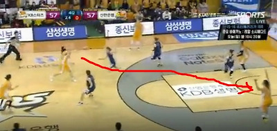 (신정자 선수가 막으려했지만 이미 물 건너간 수비 타이밍)