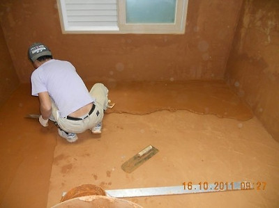 바닥은  찜질방과 같은 방법으로 시공을 하고