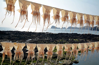 현지에서 잡은 싱싱한 오징어를 해풍에 말리고 있는 고산리 마을풍경도 좋은 사진소재가 아닐까싶다.