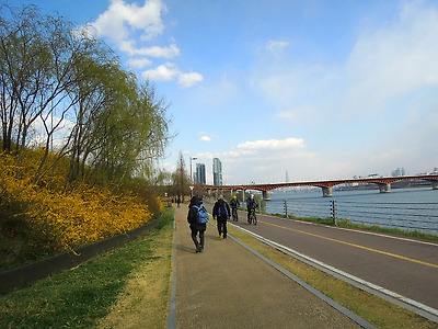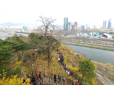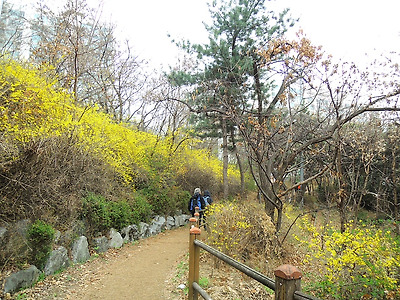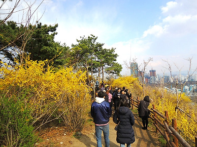 3호선 동대역 5번출구에서 직진하면 성곽길이 나온다. 신라호텔 옆길. 성곽길 올라와 내려다 보고. 정자에서 잠시 쉬는데 바람이 불어 한겨울 날씨. 배티고개 생태통로를 지난다. 개나리가 피여있는 매봉산 오르는 숲길. 매봉산 정자. 정자에서 보는 한강. 황토길도 지나고. 금호산 전망대. 금호산을 내려 가는길. 예전보다 길객들이 많이 다닌다. 응봉산으로. 완전무장하니 춥지가 않아서 좋다. 응봉산 올라와서. 축제에는 먹거리가 빠질수 없다. 사람이 많아서 순간적으로 담고. 축제 공연도 보는데 마지막 이란다. 오후들어 좋아진 날씨. 만개한 개나리 고운 모습이 보기 좋고. 응봉산을 하산 하는데 줄을 서서 내려간다. 개나리 사이에서 길객도. 날씨가 점점 좋아져 맑은 하늘이 보기 좋고 응봉역을 지난다. 용비교 건너서 보는 응봉산. 롯데타워도 잘 보인다. 서울숲으로 넘어가는 다리. 서울숲에서 보이는 응봉산. 서울숲의 벚꽃도 피고. 3호선 동대역 5번 출구에서 신라호텔 옆 성곽길로 올라가면 매봉산으로 이어지고 금호산 대현산이 줄줄이 이어 지는데 크게 어렵지 않은 길이다.3월의 마지막 날인데 바람이 불어서 겨울보다 더 춥게 느껴진다.응봉산을 오르는 가파른 계단길에선 땀이나고 정상에 올라 개나리 축제공연의 마지막 공연을 보고 하산해 서울숲으로 맑아진 하늘이 보기 좋아서 한강변 길은 걸음이 상쾌진다.서울숲으로 들어가 한바퀴 돌아 분당선 서울숲역에서 10.3k의 도보를 마치고 뒤풀이는 청량리에서 즐거운 시간을 만들고 기분좋게 귀가한다. . 삶의 나그네 -길객-