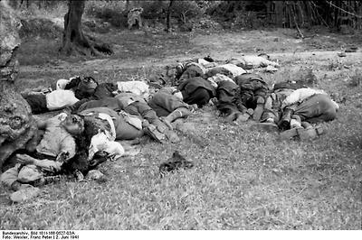 크레타섬 올리브 나무 밭에서 사망한 독일군의 사체