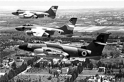 이스라엘 상공을 비행중인 이스라엘 공군의 프랑스제 보뚜르 2 N 전폭기 3대