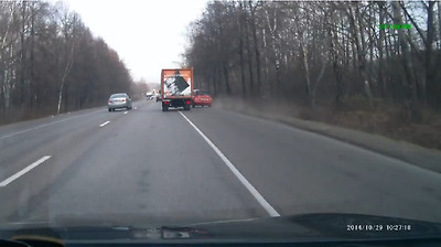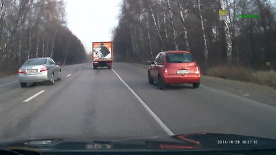 소형차의 러시아 도로 위험한 갓길 운전 - 2014년 10월 29일