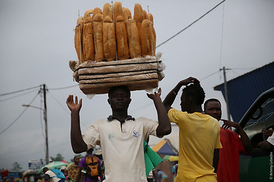 중앙 아프리카 공화국의 수도 방기 거리의 바게트 장수들 - 2014년 9월 10일