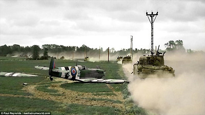 디 데이 노르망디 지역에 불시착한 영국 공군의 스핏파이어 전투기 - 1944년 6월