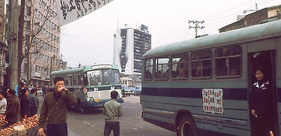 남대문 방향에서 바라본 불탄 대연각 호텔 - 1971년 12월