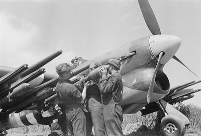 제 2차 세계대전 말기 호크 타이푼 전폭기와 3인치 60파운드 RP-3 로켓탄은 독일 기갑부대 차량들에게는