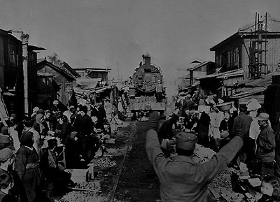 한국 6.25 전쟁중 부산역으로 향하는 문현선의 화물열차 - 1952