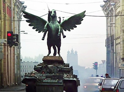 T-55 탱크 탄 러시아 표트르 대제 동상의 상트 페테르부르크 거리 드라이빙 - 007 골든아이(1995)