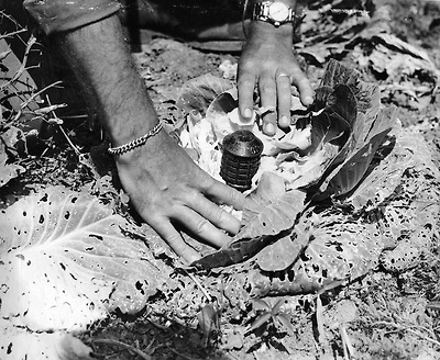 양배추밭에 97식 수류탄을 교묘히 설치해 놓은 양배추 수류탄 부비 트랩 - 1945년 4월