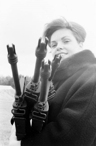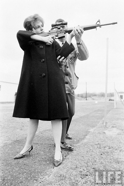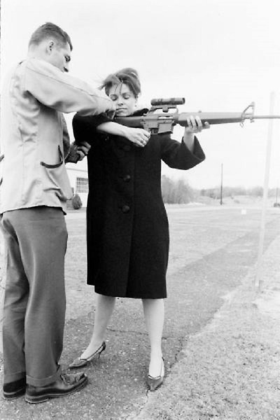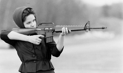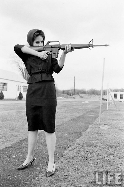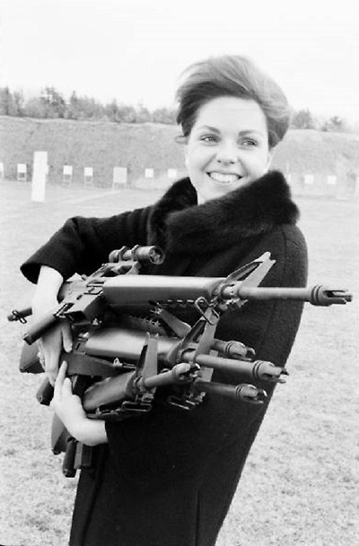콜트 AR-15 돌격 소총과 미스 아메리카 1962 마리아 플레쳐- Miss America 1962 Maria Fletcher aiming an Original Colt AR-15 Aassault Rifle