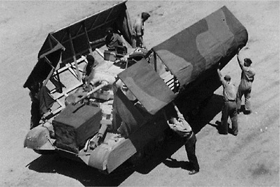 이집트 공장에서 제작한 위장용 캐노피를 기갑 차량에 덮개로 씌워 독일군이 멀리서 보면 일반 차량이나