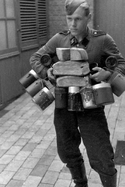 독일군 신참의 반합 수프와 식빵 나르기