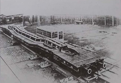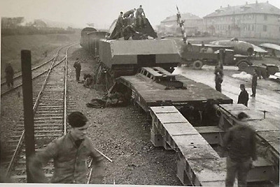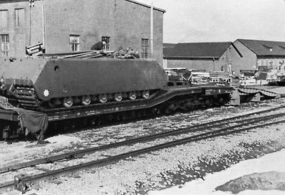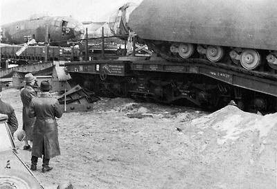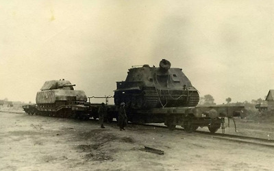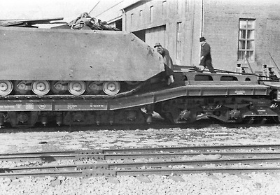 제 2차 세계대전 중반기 독일 마우스 전차의 차체 포르쉐 Type 205 차량의 철도 수송 - 1943년 5월