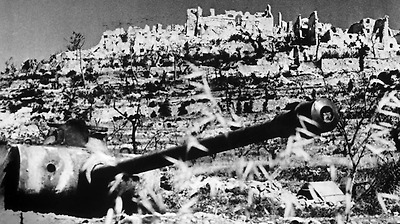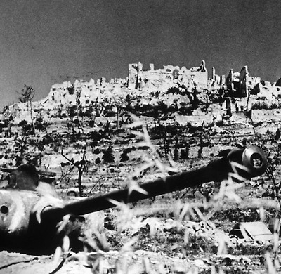 연합군의 폭격으로 파괴된 몬테카시노 수도원과  독일군 위장 컬러 판터 전차 - 1944년 5월