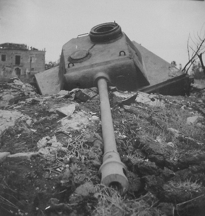 이태리 중부 몬테카시노 지역 히틀러 라인에서 파괴된 독일군 판터 전차 포탑 벙커 - 1944년 5월
