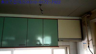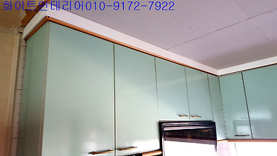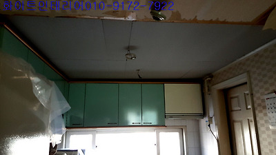 신방동현대두레아파트인테리어중 싱크대상부 몰딩 마감처리및 석고보드 교환시공입니다