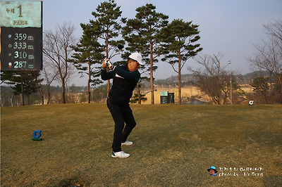 누리코스 1번 홀에서 라운딩을 하기 전에 드라이버를 잡고 서서히 몸을 풀기도 한다.