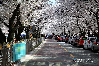 대구시 달성군 옥포면 송해공원으로 가는 길목의 용연사 입구의 벚꽃 길은 지금 벚꽃이 한창 만발하여