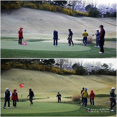 그린에서 퍼팅을 즐겨보지만 주변의 벚꽃구경을 하느라고 공을 홀컵으로 골인시키지를 못하고 마음은 엉뚱한 곳으로 가있다. ㅋ