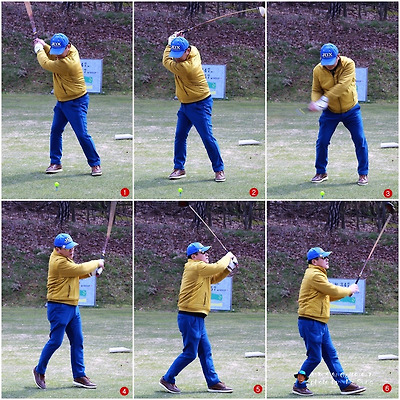 노 프로가 드라이버를 잡고 티샷을 날리는 장면을 고속으로 연속촬영한 멋진 폼의 자세이기도 하다.