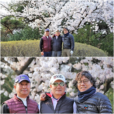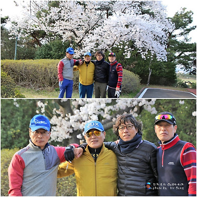 라운딩을 즐기다가 여유로운 모습으로 벚꽃이 만발한 아름다운 풍경을 배경으로 친구들의 모습을 한 컷 담아보았다.
